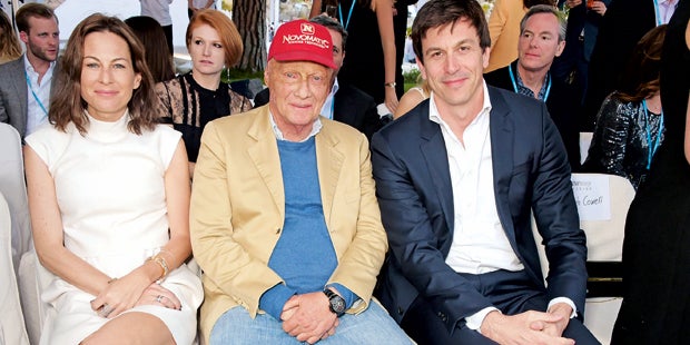 Der Mercedes-Boss saß neben Toto Wolff und Tamara Ecclestone – sie kam mit Baby-Tochter Sophia – in der ersten Reihe. Am Catwalk zeigten sich u. a. die Fahrer Will Stevens und Marcus Ericsson sowie Jenson Buttons schöne Ehefrau Jessica.
