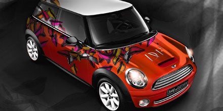 Mini (Hatch) an. Ein Mini Cabrio wird vom New Yorker Fashion-Designer