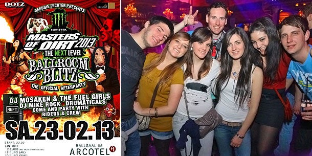 Am Samstag findet im Arcotel Wimberger die offizielle After-Show-Party zu Masters of Dirt 2013 statt. Für heiße Partystimmung sorgen u.a. DJ Mosaken, The Fuel Girls, DJ Mike Rock, DJ Danny La Vega und die Drumaticals. Zudem werden einige der Masters of Dirt Stars höchst persönlich auf der Party erwartet. Los gehts ab 22:30 Uhr. Für den Dresscode gilt: Dress For A Mess!
