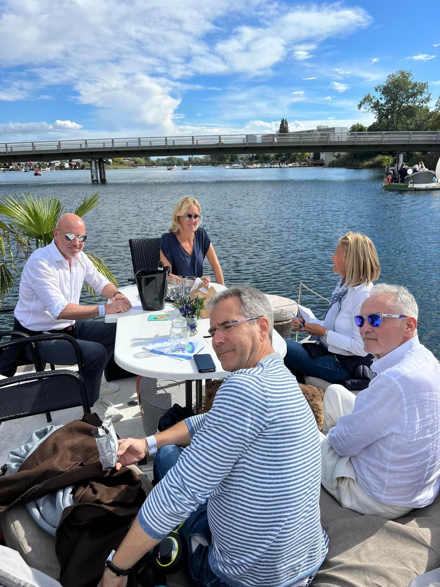 Von der Côte d’Azur direkt an die Alte Donau: Verleger Christian Mucha und seine Gattin Ekaterina genossen einen schwimmenden Geburtstag auf den elektronischen Inselbooten vor dem Restaurant Schinakel. Doch dann zog ein Gewitter auf und den Gästen verging das Lachen. "In Seenot kummst nur und dort holt dich der Teufel mitten in Wien beim Gänsehäufel", schreibt Mucha und erzählt die Geschichte.