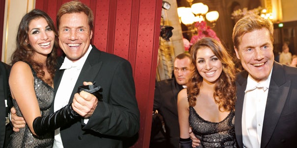 „Ich bin kein Notnagel“, konterte Dieter Bohlen auf spitze Fragen. Mit Freundin Carina – sexy gekleidet in Callisti-Robe – trank er am Wiener Opernball relaxt Moet-Champagner und amüsierte sich über den Medienrummel um seine Person. „Das ist nichts Neues für mich!“ posaunte er durch die Gänge, während er von fünf Bodyguards vor Fotografen geschützt werden musste.