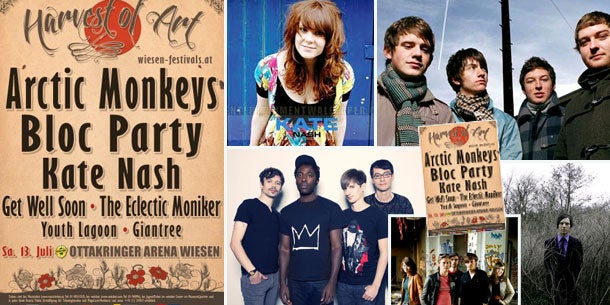 Giantree eröffnen um 14.00 Uhr das Festival. Neben der Show der Arctic Monkeys, treten um 23.00 Uhr die Künstler Bloc Party, Kate Nash und Get Well Soon in Wiesen auf. Kate Nash wird als dritter Headliner am heurigen „Harvest Of Art“ Festival rocken. Und auch sie gibt sich auf ihrem jüngsten Album härter und punkiger als bisher. Das liegt daran, dass sie nebenbei noch in einer Punk-Band mitmacht.