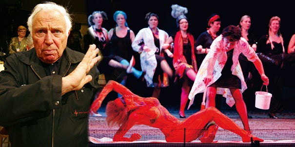 Frauen machen Theater auf dem Theater. Lady M. tritt in ihrem Badezimmer