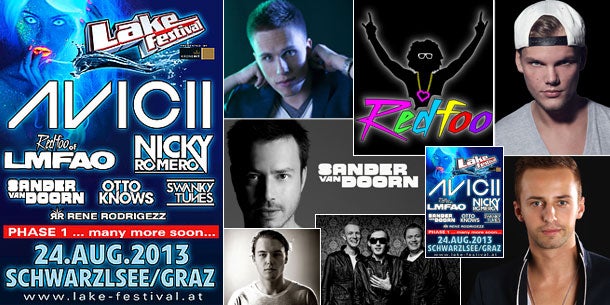 Top-Acts. Das Line Up am Schwarzlsee bei Graz lässt dieses Jahr bestimmt keine Wünsche offen. Neben der chilligen Location direkt am Schwarzlsee haben sich Top-Acts wie Steve Aoki, DJ Avicii, Red Foo of LMFAO & The Party Rock Crew, Nicky Romero, Sander van Doorn, Otto Knows, Swanky Tunes, Rene Rodrigezz und Sebastian Ingrosso von der Swedish House Mafia angekündigt. Das Festival findet bereits am 24. August 2013 am Schwarzlsee bei Graz statt. Tickets sind noch zu haben!