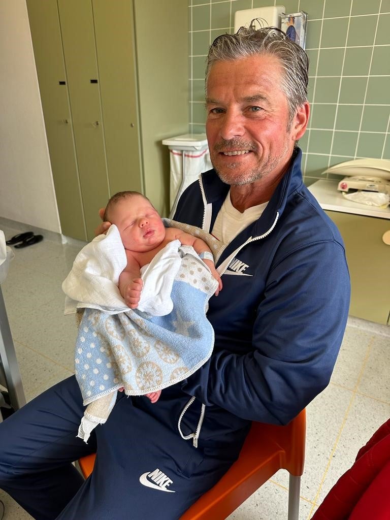 Nein, Frenkie Schinkels (60) ist nicht erneut Papa geworden - der Ex-Kicker hält hier sein achtes Enkelkind im Arm. Tochter Sabrina freut sich über Nachwuchs und der Opa ebenso. Dass Schinkels einmal so eine große Familie haben würde, habe er nicht gedacht: "Ich bin ja selbst ein Einzelkind."