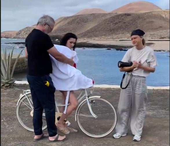 Ex-Skirennläuferin Anna Veith verbringt gerade ein paar Tage auf der spanischen Insel La Graciosa. Nicht aber zur Entspannung, sondern für einen Werbeauftrag wie es scheint. Bei einem Shooting sitzt sie auf einem Fahrrad vor traumhafter Kulisse. Ein Mann hält ihr einen Bademantel vor, damit man nicht sieht, was sich darunter versteckt. Ist Veith etwa gar nackt? Eine andere Szene zeigt die fesche (32) Salzburgerin posierend hinter einer weißen Mauer. Dabei trägt sie offenbar einen gelben Bikini.