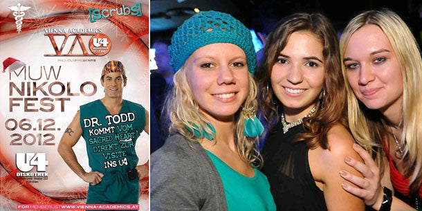 Am 06. Dezember 2012 präsentiert Vienna Academics "Das Muw Nikolo Fest" für alle Medizin Studierenden, aber natürlich auch für alle anderen die gerne Party machen. Für den besten Party-Sound sorgen u.a. DJ Tom Silver und DJ Dabrain. Als Special Guest wird Dr. Todd, bekannt aus der TV-Serie "Scrubs" dem U4 eine Visite abstatten.