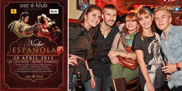 Wien ist um eine neue Eventserie reicher. Die "Noche Española" vereint Kunst, Kultur, Musik und Gastronomie der iberischen Halbinsel im Ost Klub und bietet ein abwechslungsreiches Programm. Bereits zum Kick-Off Termin am 20.04.2013 werden auf 3 Floors sämtliche Sinne betört.