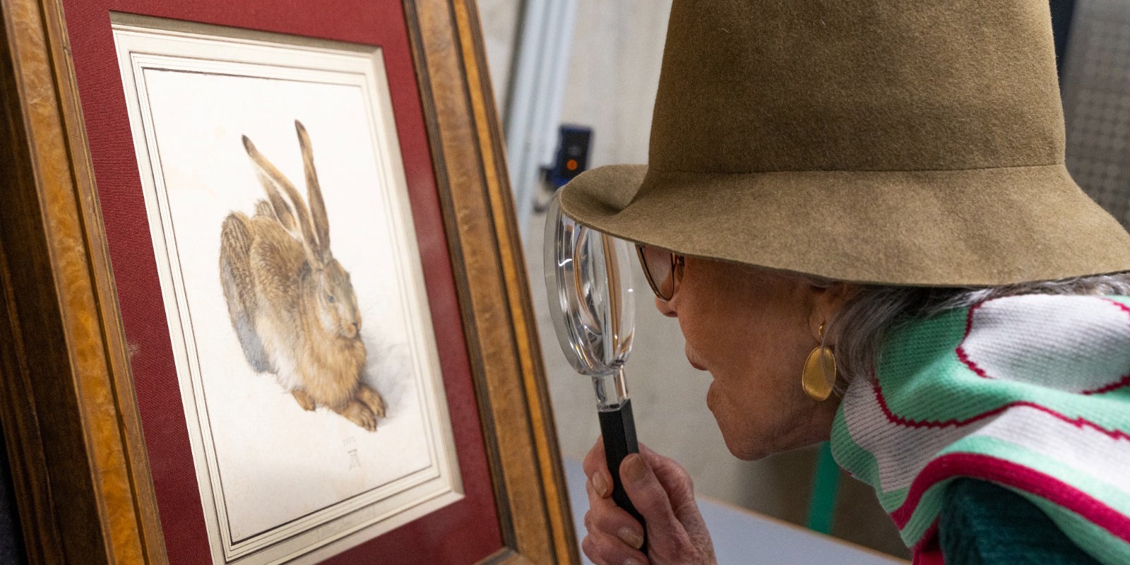 „Das Bild ist sicher im Tiefspeicher verwahrt und kann aufgrund seiner Lichtempfindlichkeit leider nicht permanent gezeigt werden. Der Hase ist sozusagen unser Wappentier, das wir hegen und pflegen, damit es auch künftigen Generationen erhalten bleibt. Zuletzt wurde Dürers Feldhase vor fünf Jahren ausgestellt“, so Direktor Schröder.