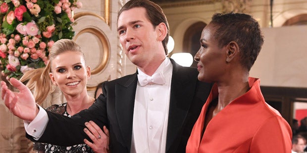 Kurz kündigte an, an diesem Abend noch "das eine oder andere Glas Wein" zu trinken. Den Opernball bezeichnete er als "eine tolle Visitenkarte für unser Land". Der Bundeskanzler brachte zu seinem Opernball-Debüt die Menschenrechtsaktivistin und Autorin Waris Dirie mit, die "glücklich" war, den Abend in der Staatsoper verbringen zu dürfen. Dirie kämpft seit Jahren gegen weibliche Genitalverstümmelung und will auch am Opernball Lobbying "für 600 Millionen afrikanische Frauen" betreiben. Auch der irische Ministerpräsident Leo Varadkar mit Partner Matthew Barrett waren Gast in der Kanzler-Loge. "Ich freue mich hier zu sein", sagte Varadkar auf Deutsch im Interview mit dem ORF. Wien "ist eine wunderschöne Stadt".