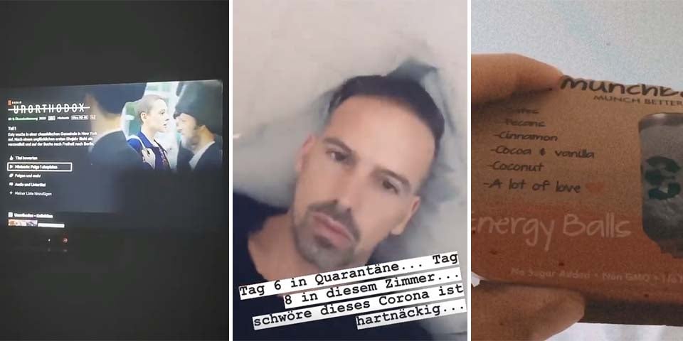 Vor ein paar Tagen hat RAF dann plötzlich Fieber bekommen und dann einen Test gemacht. Das Ergebnis: positiv! Seitdem muss er sich in seinem Zimmer aufhalten, abgeschottet von Freunden und Bekannten. Doch was macht er die ganze Zeit? Er schaut sich Serien auf Netflix an! Darunter die Streaming-Hits Lupin und Unothodox. Zwischendurch wird er immer wieder mit Essen und Snacks versorgt. Freunde stellen ihm unter anderem Heidelbeeren oder Energiebällchen vor die Tür.
