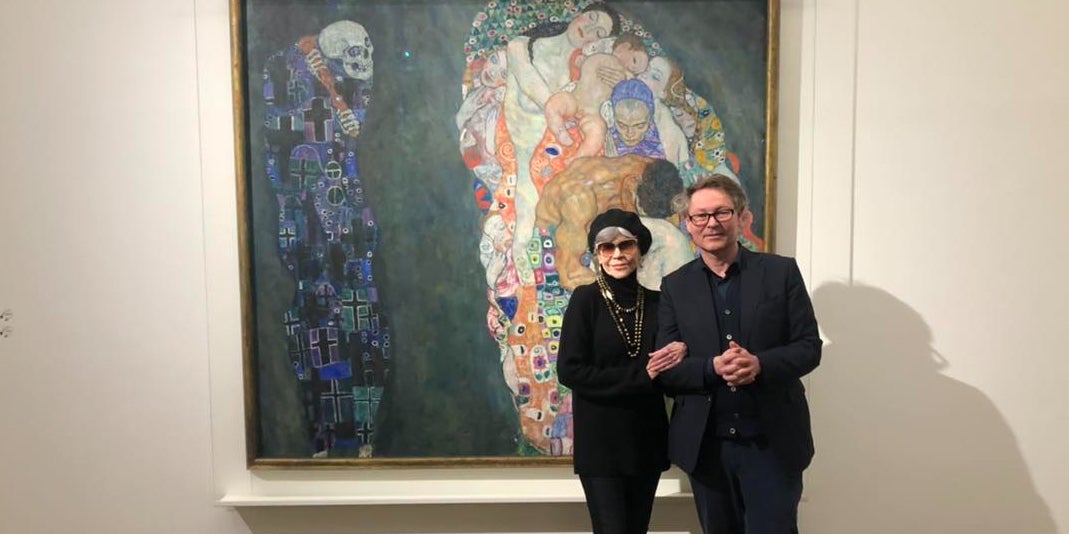 Museum. Später stahl sich die kulturaffine Fonda still und leise davon und ging ins Leopold-Museum, wo sie mit Direktor Hans-Peter Wipplinger posierte – diesmal ganz ohne Maske. Am Dienstag sollen weitere Museumsbesuche folgen.