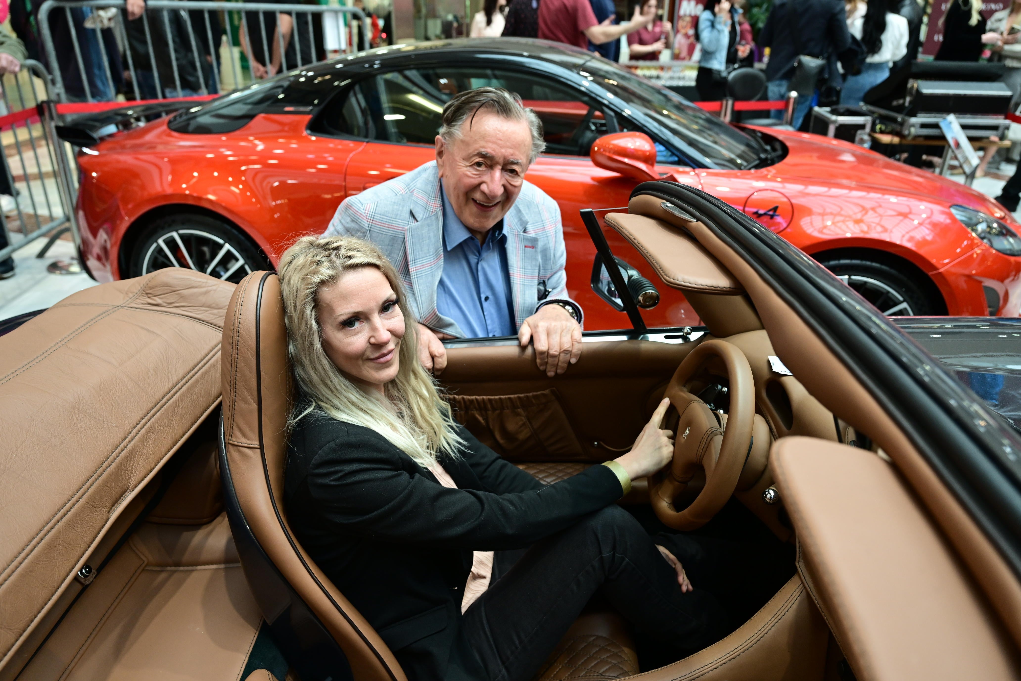 Richard Lugner und Simone Reiländer vor dem Wasserfall im Wynn
