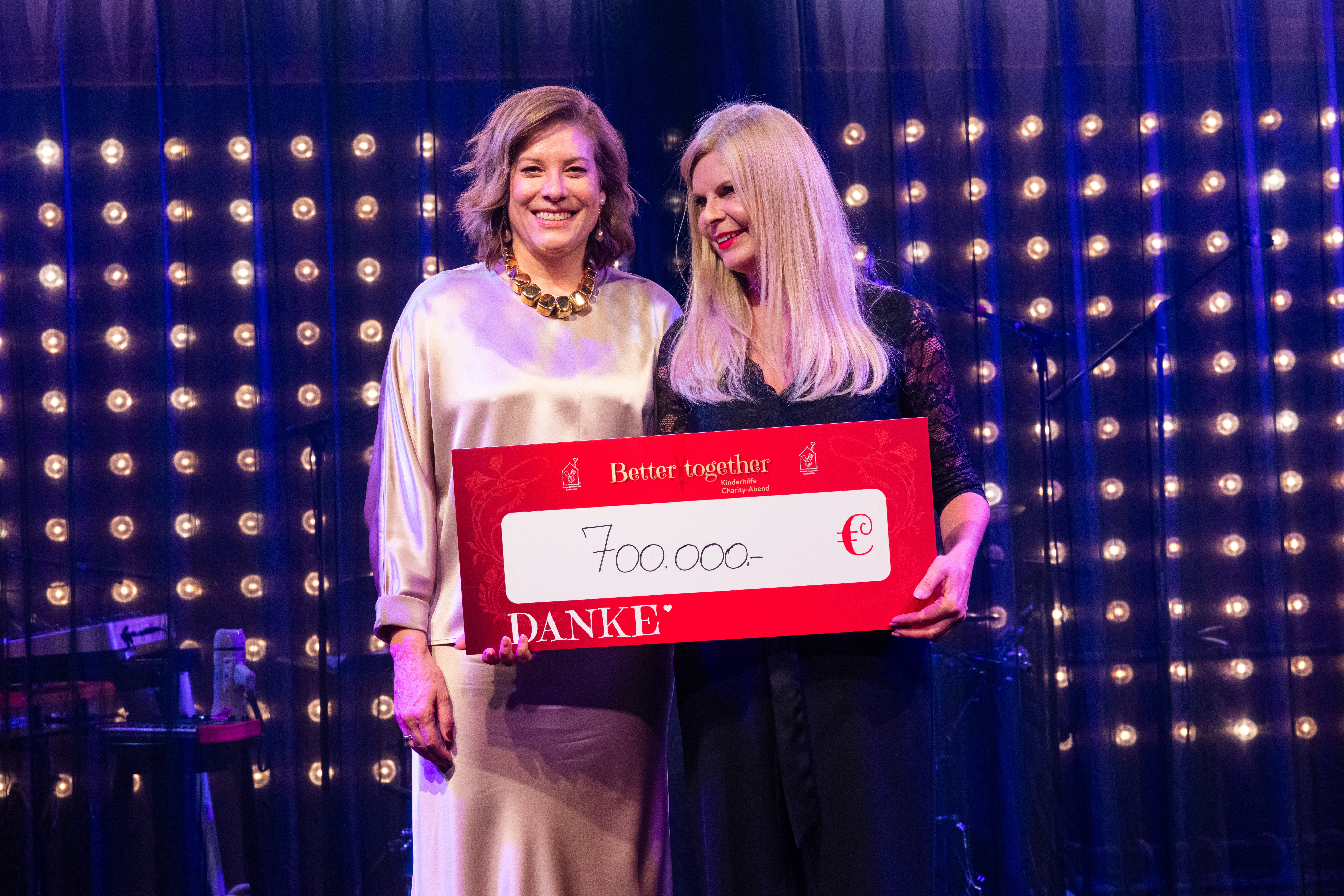 Der Abend wartete mit einigen Überraschungen zu Beginn auf: Mit einem artistischen Rahmenprogramm inklusive Feuerschlucker, Stelzengeher, Pantomimen und Gaukler wurde das Palazzo-Showformat zu einem einzigartigen Charity-Special erweitert. Bei einer Stillen Auktion kamen signierte Kunstwerke, exklusive Sammlerstücke und emotionale "Money-can’t-buy"-Erlebnisse zugunsten von Familien mit schwer erkrankten Kindern erfolgreich zur Versteigerung. In den Pausen konnten Gäste mithilfe leuchtend pinken Herzlampen an ihren Tischen spontan spenden – und damit ein sichtbares Zeichen gelebter Solidarität setzen.