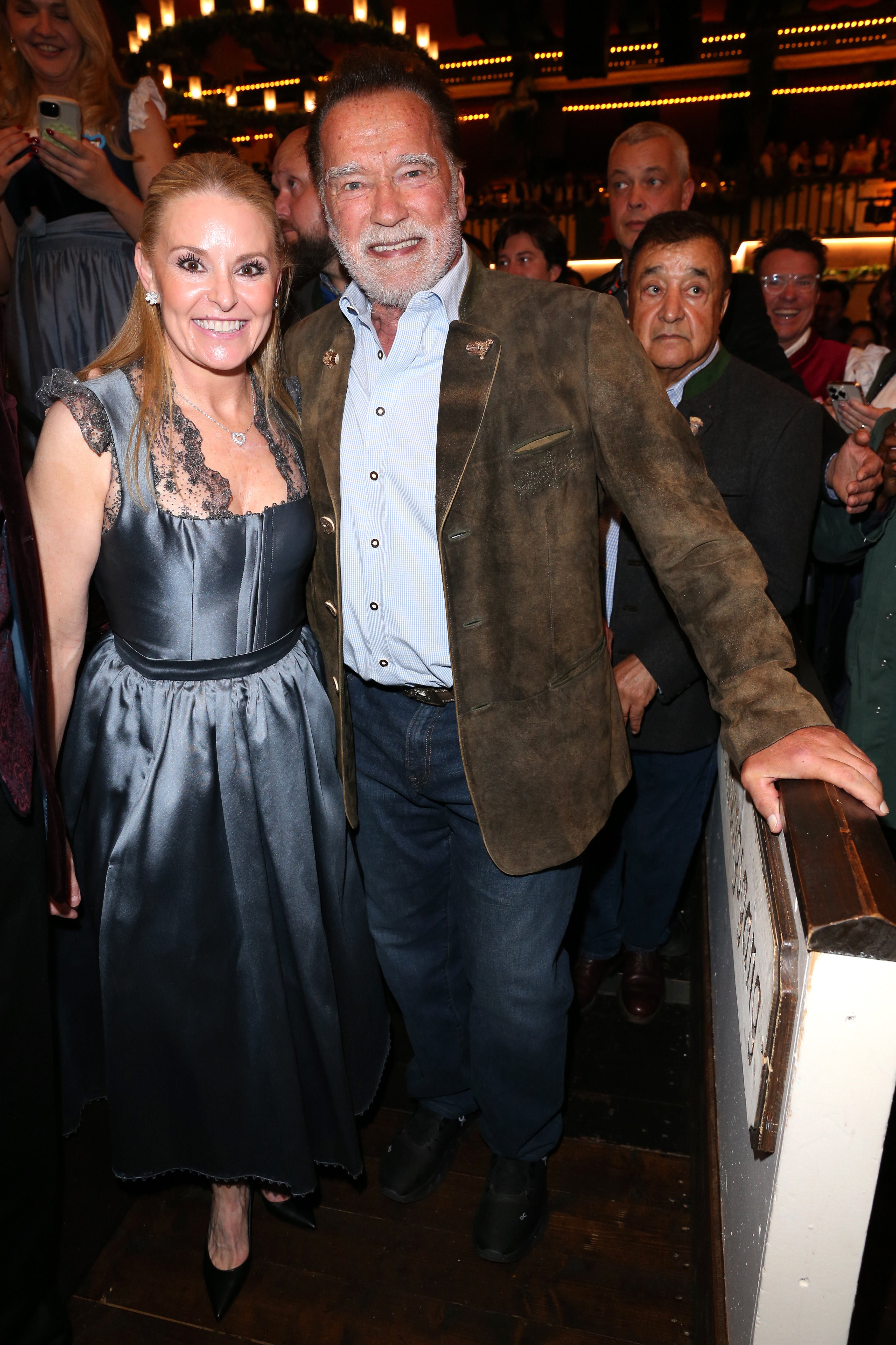 Am Donnerstag hatte Schwarzenegger seinen Besuch noch vergleichsweise privat und zurückhaltend gestaltet, doch nur einen Tag später zeigte er sich in Feierlaune. Gemeinsam mit Freunden und Familie zog es ihn ins Marstall-Festzelt, wo er zur Freude des Publikums eine seiner persönlichen Oktoberfest-Traditionen fortführte: den Taktstock in die Hand nehmen und als „Wiesn-Maestro“ das Zelt dirigieren.