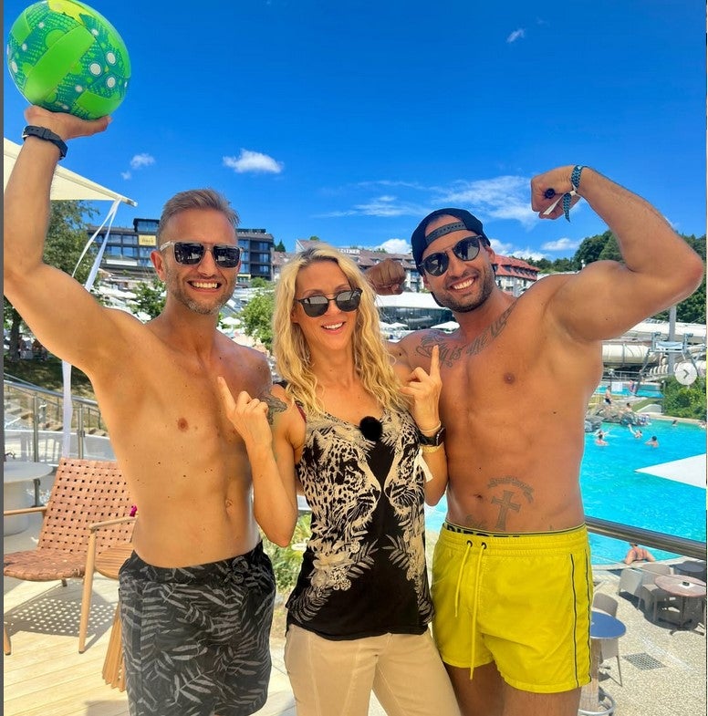 Gut gelaunt posierte Simone mit gleich mehreren durchtrainierten Männern, darunter ihr Dauerbegleiter Christopher Dengg. Oberkörperfrei und mit breitem Grinsen ließen die Herren stolz ihre Muskeln spielen, während Simone – ganz ladylike – auf Bikini verzichtete und lieber auf ein luftiges Top mit Animal-Print und helle Hosen setzte.