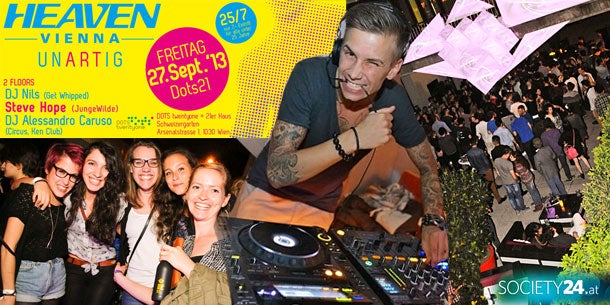 Unartig gute Party im 21er Haus. Heaven Vienna lädt am 27. September ins Dots twentyone im 21er Haus in den Schweizergarten. Auf gleich zwei Floors bringen Steve Hope, DJ Nils und DJ Alessandro Caruso das Publikum in der neuen Heaven Location zum Tanzen.