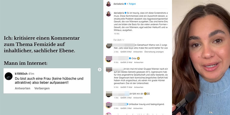 Es ist nicht das erste Mal, wie dem Posting zu entnehmen ist, dass sie im Internet bedroht wird. Und das ist just eine Reaktion darauf, dass sie Aufmerksam machen will auf Gewalt, die von Männern ausgeht. Ihr Fazit zu den Drohungen gegen sie: Ich weiß wirklich nicht was noch gesagt werden muss, damit man uns glaubt. Und glaubt, dass wir ein Problem mit männlicher Gewalt haben."