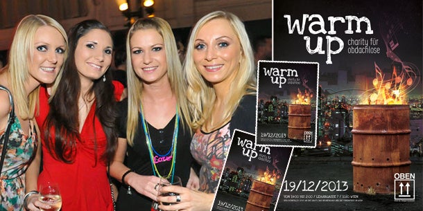 Aus einem Aufruf des DJs und Producers Sascha Weisz aka Megablast auf Facebook, eine Charity-Party für Obdachlose zu veranstalten, ergibt sich nun "Warm Up" mit zahlreichen Party-Specials im Gepäck. Über 400 Likes alleine fand der Aufruf des Wiener DJs und die unmittelbar danach gegründete Gruppe wuchs schnell auf über 500 Mitglieder heran. Über 50 freiwillige Helfer machten es möglich den kurzfristig ins Leben gerufenen Event zu realisieren.