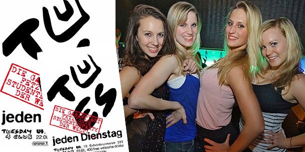 Jeden Dienstag ab 22 Uhr feiert die “Mutter aller Studentenclubs” der TuesdayClub im U4 eine wilde Party, zu Partyhits von Disco über RnB bis Rock von einst bis heute.
