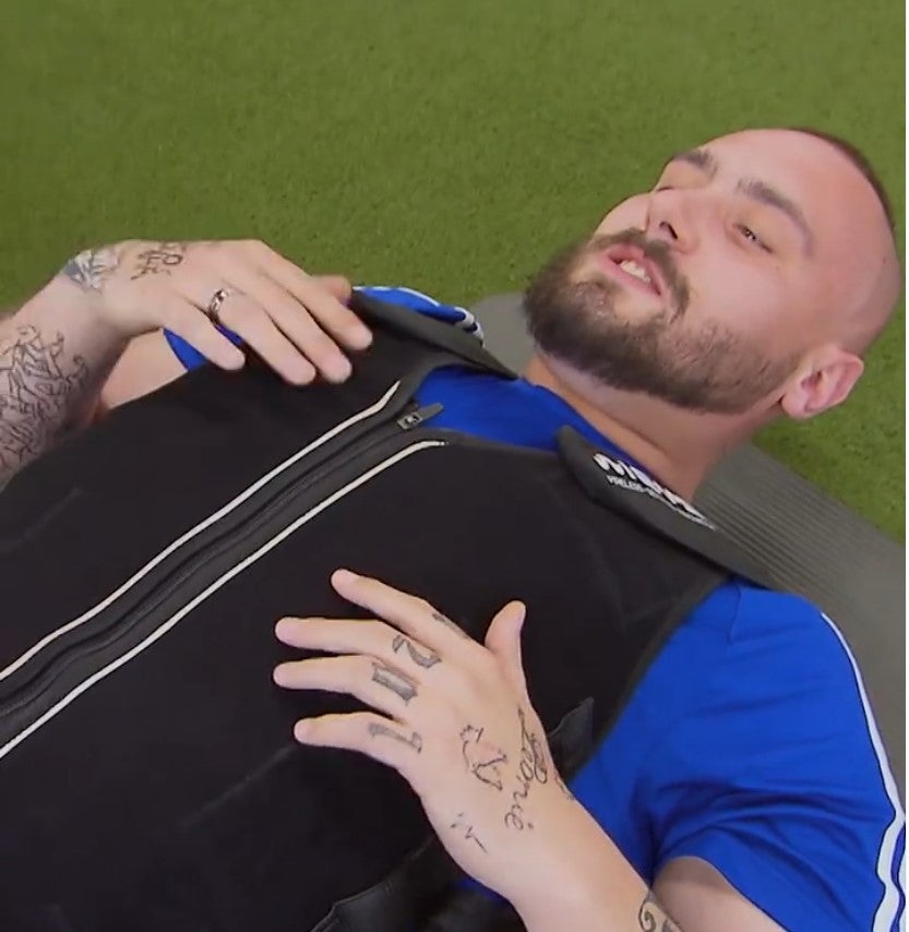 Der TWM-Star bekommt mit Elektroimpulsen eine Vorstellung davon, wie sich Wehen anfühlen