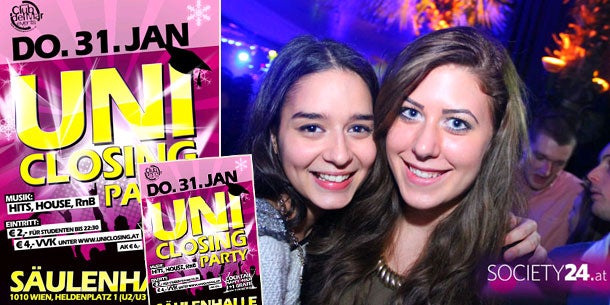 Society24 verlost 3x2 Tickest für die Uni Semesterclosing Party am 31. Jänner in der Wiener Säulenhalle. Wer Karten gewinnen will, schickt uns ein Mail an: gewinne@society24.at, Betreff:Uni Semester Closing.