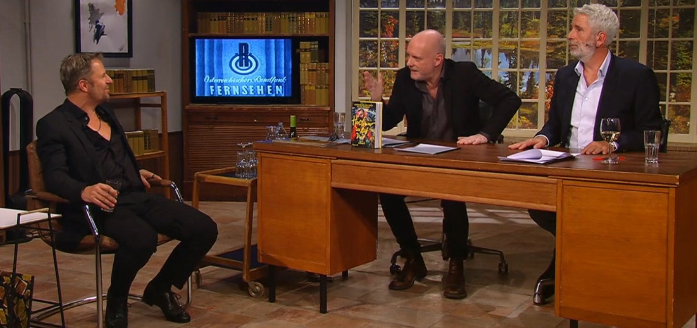 Doch die beiden Gastgeber lassen nicht locker. Grissemann meint trocken: „Wollte ich gestern lesen, bin aber im Bad ausgerutscht und mit dem Kopf gegen die Therme gekracht.“ Stermann hakt nach: „Hast du mit 51 beschlossen, am Zenit deiner Karriere dieses Buch zu schreiben?“