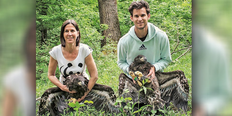 Unter Mithilfe des Tennisprofis stattete die Naturschutzorganisation WWF Österreich zwei Jungvögel mit GPS-Sendern aus. „Es war eine unglaublich berührende Erfahrung, den bald ausfliegenden Adlern Starthilfe für ihre anstehende Reise durch Europa zu geben“, freut sich Thiem, der einem Seeadler persönlich den Sender am Bein anbrachte.