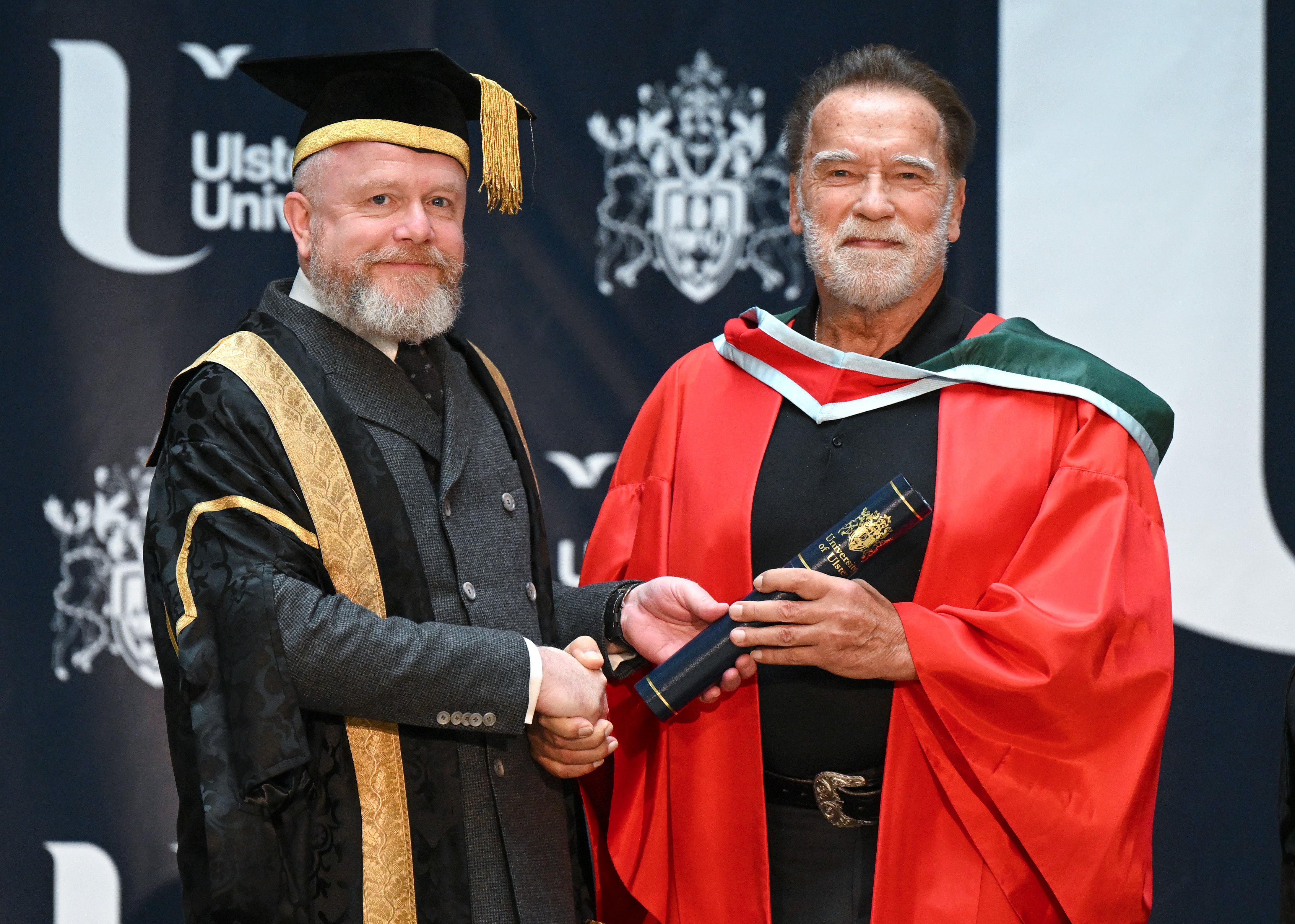 Unser Export-Hit aus der Steiermark sorgt in Nordirland für Begeisterung. Arnold Schwarzenegger wurde von der Ulster University mit der Ehrendoktorwürde ausgezeichnet. Die Universität würdigte damit seine Beiträge im öffentlichen Dienst, seinen Einsatz für die Umwelt sowie sein künstlerisches Schaffen. Für den Weltstar war der Empfang auf dem roten Teppich ein ganz besonderer Moment, während Studenten Schilder mit Aufschriften wie "Ulster he’s back" hochhielten und Kopien von "Terminator 2" zum Signieren mitbrachten.