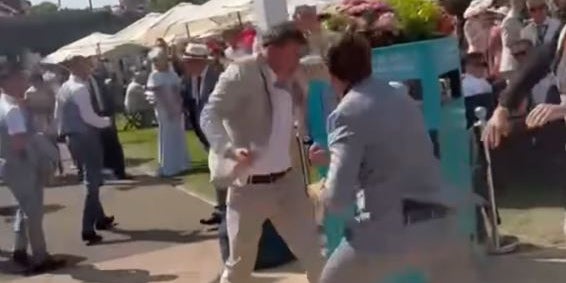 Beim prestigeträchtigen Pferderennen Royal Ascot im britischen Berkshire kam es zu einer brutalen Auseinandersetzung zwischen zwei jungen Männern – mitten im festlich gekleideten Publikum.