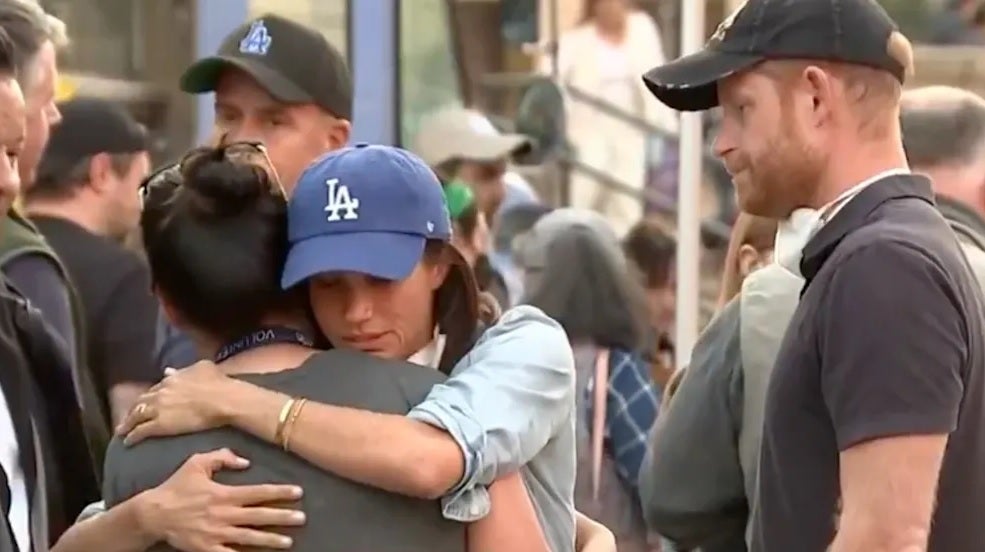 Prinz Harry (40) und seine Frau, Herzogin Meghan (43), haben sich mit Betroffenen der Brände in Kalifornien getroffen. In Aufnahmen des US-Senders Fox 11 waren die beiden auf einem Konferenzgelände in Pasadena nahe Los Angeles zu sehen. Sie unterhielten sich dort mit Menschen, die vor den Flammen aus ihren Häusern fliehen mussten, sowie mit Helfern. Immer wieder war zu sehen, wie die Royals einzelne Menschen tröstend in den Arm nahmen.