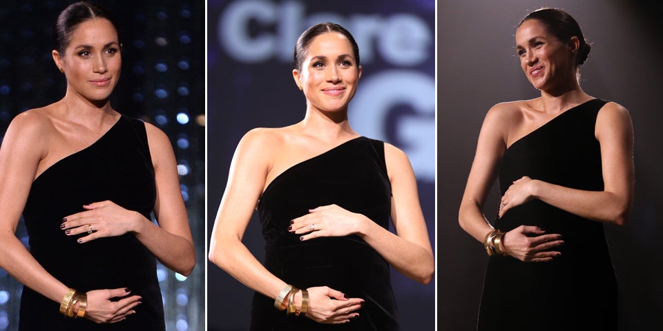 Im hautengen asymmetrischen Givenchy-Kleid, unter dem sich deutlich der süße Babybauch abzeichnete, ehrte sie ihre Hochzeits-Schneiderin Clare Waight Keller als beste britische Designerin für Damen. „Dass jemand wie Meghan gerade mir für so einen intimen Moment vertraute, ist unbezahlbar“, rang Keller dabei mit den Tränen.