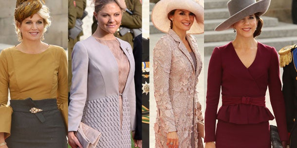 Für die kirchliche Trauung von Guillaume und Stephanie hatten sich die royalen Ladys ganz schön in Schale geworfen. Letizia von Spanien setzte auf ein taupefarbenes Kleid mit einem aus aufwändiger Spitze besetzten Mantel. Mary von Dänemark strahlte an der Seite ihres Mannes Frederic in sattem Bordeaux. Victoria von Schweden kam im taupefarbenen langen Mantel, darunter trug sie ein zauberhaftes Kleid in lila. Máxima der Niederlande wählte eine Kombination aus schlichtem grau-braunen Rock und senffarbenen Oberteil - dazu trug Willelm Alexanders Gattin einen mit Fasanenfedern besetzen Hut. Und Prinzessin Caroline von Hannover verzauberte in einem nudefarbenen Kleid mit schönen Glitzerapplikationen.