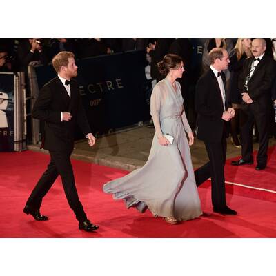 Als krönender Abschluss des Red Carpet-Events schritten die drei Royals über den roten Teppich. Vor der Royal Albert Hall wurden sie von Regisseur Sam Mendes und den Produzenten in Empfang genommen und zum Eingang begleitet.