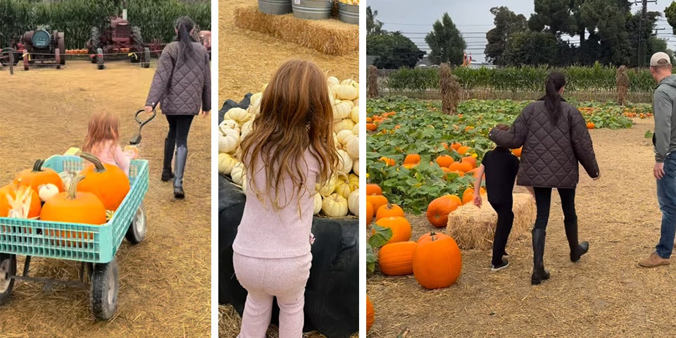 Auch Harry und Meghan machten sich auf, um mit ihren Kindern Archie (6) und Lilibet (4) einen Bauernhof aufzusuchen und dort Kürbisse zu schnitzen. Eine schöne Beschäftigung für die ganze Familie - auch Meghans Mama Doria war dabei.
