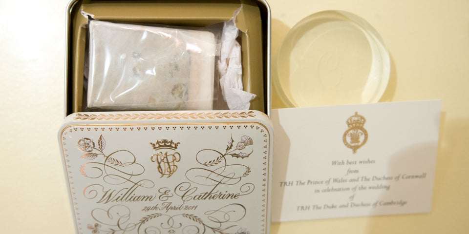 Der nun versteigerte Kuchen ist in Papier eingeschlagen und kommt in einer teilweise vergoldeten Blechbüchse mitsamt Grußkarte von Prinz Charles und Herzogin Camilla. Wer das Backwerk zum Kauf angeboten hat, ist nicht bekannt. Die Stücke waren als Souvenir an Gäste der royalen Hochzeit verteilt worden, heißt es in einer Mitteilung des Auktionshauses.