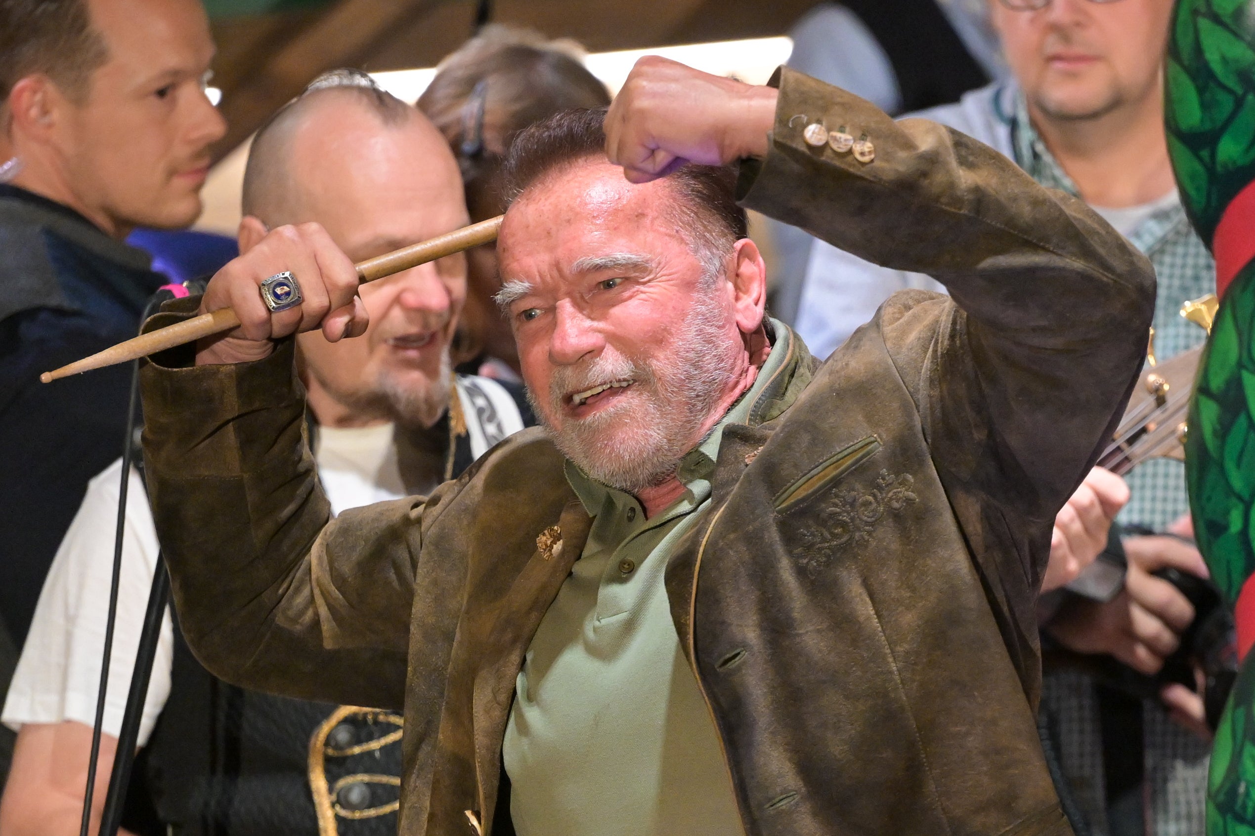 Am Freitag ist er nach einem Kurzbesuch ja bald wieder von der Wiesn geflüchtet (Oe24.at berichtete). Am Samstag gab Arnold Schwarzenegger dafür in München Extra Vollgas. Und das in wahrten Sinne des Wortes: Im Marstall Festzelt von Siegfried Able dirigierte er das „Königlich Bayrische Vollgas Orchester“. Gekonnt gab er mit dem Taktstock das Tempo vor. Natürlich zu „Steirermen san very good“, der ja auf ihn getexteten Party-Hymne der Stoakogler. Da kannte die Stimmung keine Grenzen: die Besucher tanzten zur Gaudi des Terminators sogar auf den Tischen ab.