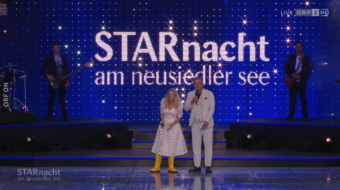 Von Schlager-Stars bis Italo-Legenden über Austro-Pop-Giganten war die diesjährige Gästeliste für die "Starnacht am Neusiedler See" wieder hochkarätig besetzt. Doch das Wetter machte den Festlichkeiten einen Strich durch die Rechnung. Selbst die geballten Moderations-Kräfte von "Starnacht"-Dreamteam Barbara Schöneberger und Hans Sigl konnte dagegen nichts machen.