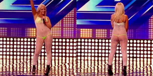 Der eigentliche Höhepunkt war ihre Performance. Als sie nämlich mit dem Trällern anfing, konnte keiner mehr seine Augen von ihr abwenden. Sie betörte das Publikum samt Jury mit erotischen Moves und tänzelte sich Stück für Stück an die Jury heran, visierte ihr erstes Opfer in Form von Louis Walsh und schlug zu. Verführerisch nahm sie auf dem Jurorentisch mit gespreizten Beinen Platz und versuchte den 59-Jährigen zu verführen. Schlussendlich drückte sie den Kopf des Jurymitgliedes zwischen ihre Brüste. Wenig später sollte dann auch der zweite Herr der Runde, Gary Barlow in den Genuss der optischen Verführung mit Tuchfühlungs-Effekt kommen. Als er die Gefahr witterte, sprang er allerdings auf und ergriff schlagartig die Flucht vor dem Britney-Double. Für lautes Gelächter sorgte Bliss´s Auftritt auf jeden Fall. Weiter kam sie mit ihrer Peep-Show allerdings nicht.