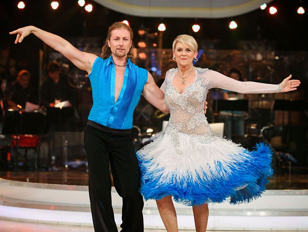 20:38 Uhr: Auch der Sänger ist fertig mit seiner Performance. Zu "Sugar Town" wirbelte er seine Roswitha durch den Ballroom.