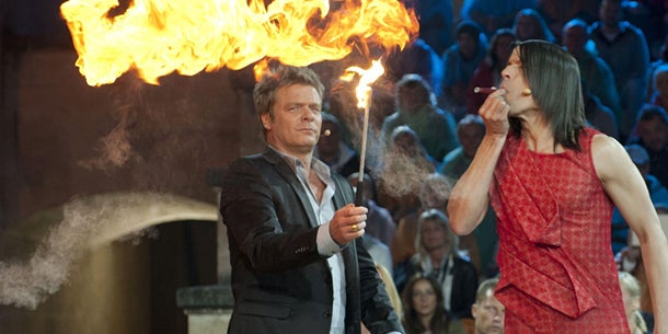 Bei TV-Aufnahmen für Jubiläumsshow brach Feuer im Amphitheater aus.