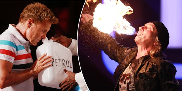 Bruce Darnell und Dieter Bohlen waren ebenfalls zuerst total begeistert und lobten den Künstler. Ich hab ja anfangs geglaubt, das ist ein Trick. Aber ich glaube ihm wirklich, dass er das ganze Benzin gesoffen hat. Mamma mia", so der Poptitan, dem auch nicht auffiel, dass da irgendetwas faul sein muss.