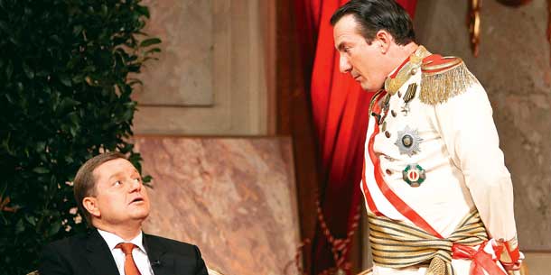 So hatte sich ÖVP-Nationalratsabgeordneter Werner Amon seinen Abgang bei der Satireshow Wir sind Kaiser nicht vorgestellt. Kaiser Robert Heinrich I. (Robert Palfrader) ließ den Polit-Funktionär nach dessen Audienz in Handschellen abführen. Grund: Amtsanmaßung. Seine Majestät hatte ein Foto entdeckt, das Amon in der Uniform des Kaisers zeigt.