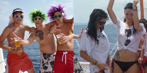 Eigi, Molti, Spotzl und Pichler machen die Mädchen auf der Yacht ordentlich nass.