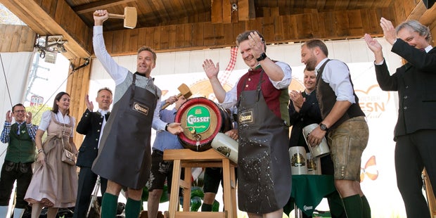 Drei Festzelte. Gewaltig sind die drei Festzelte: Das Gösser-Zelt bietet Platz für 3.500 Gäste und verfügt über einen Balkon für 200 Personen – hier ist „leise“ ein absolutes Fremdwort.