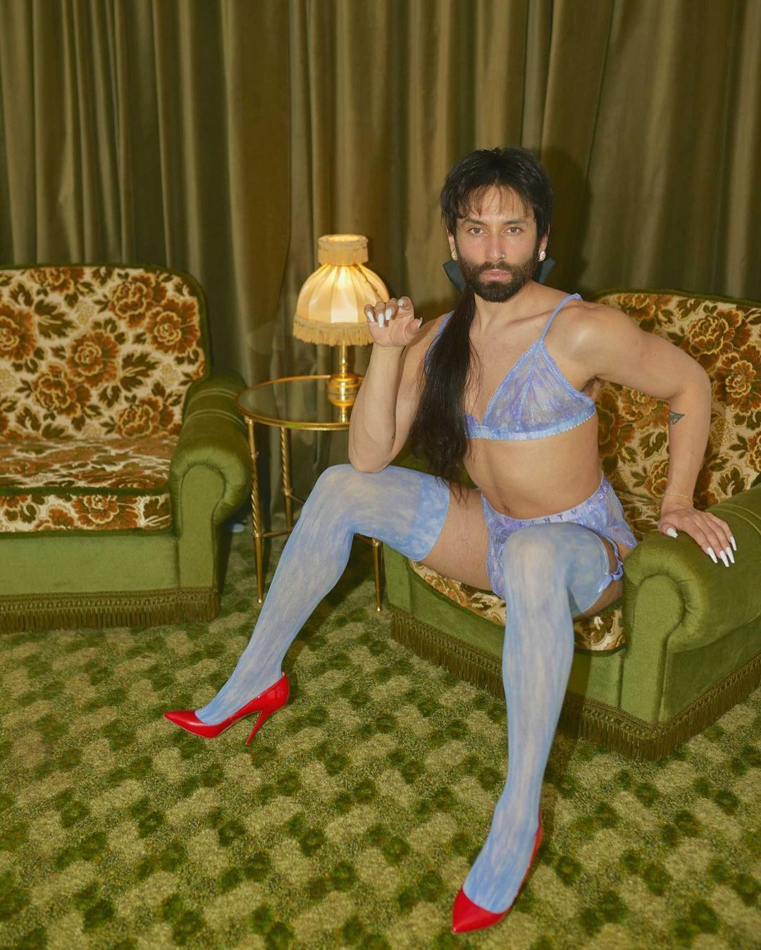 Wahrhaftig exzentrisch. Hier bleibt fast nichts der Vorstellung überlassen. Auf seinen neuesten Instagram-Fotos räkelt sich Conchita Wurst rekelt in knapper Wäsche auf einer Couch, spreizt die Beine und streckt den Po in die Kamera.