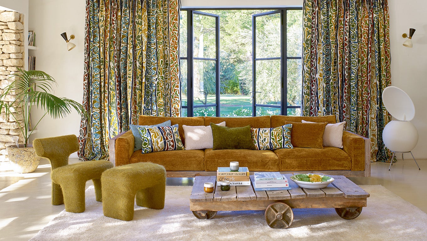 Die einfachste Möglichkeit, eine Veränderung zu bewirken, ist es, die Möbel neu zu überziehen. Pierre Frey verkörpert den Trend der Reminiszenz an die Vergangenheit mit seinen lebendigen Mustern. Im Jahr 1935 gegründet, produziert Maison Pierre Frey Stoffe in einem erfinderischen und zutiefst eklektischen Geist. Die Inspiration dafür zieht das Unternehmen sowohl aus der Kunst ferner ethnischer Gruppen als auch aus dem 18. Jahrhundert in Frankreich und der zeitgenössischen Kunst. Die Kollektionen von Pierre Frey kombinieren Materialien und Muster in kühnen und einzigartigen Farben. In den letzten Jahren hat der Designer sein Angebot erweitert, um neue Bereiche einzubeziehen, in denen das Unternehmen all seine kreative Kraft entfaltet: Tapeten, maßgefertigte Teppiche sowie Möbel.