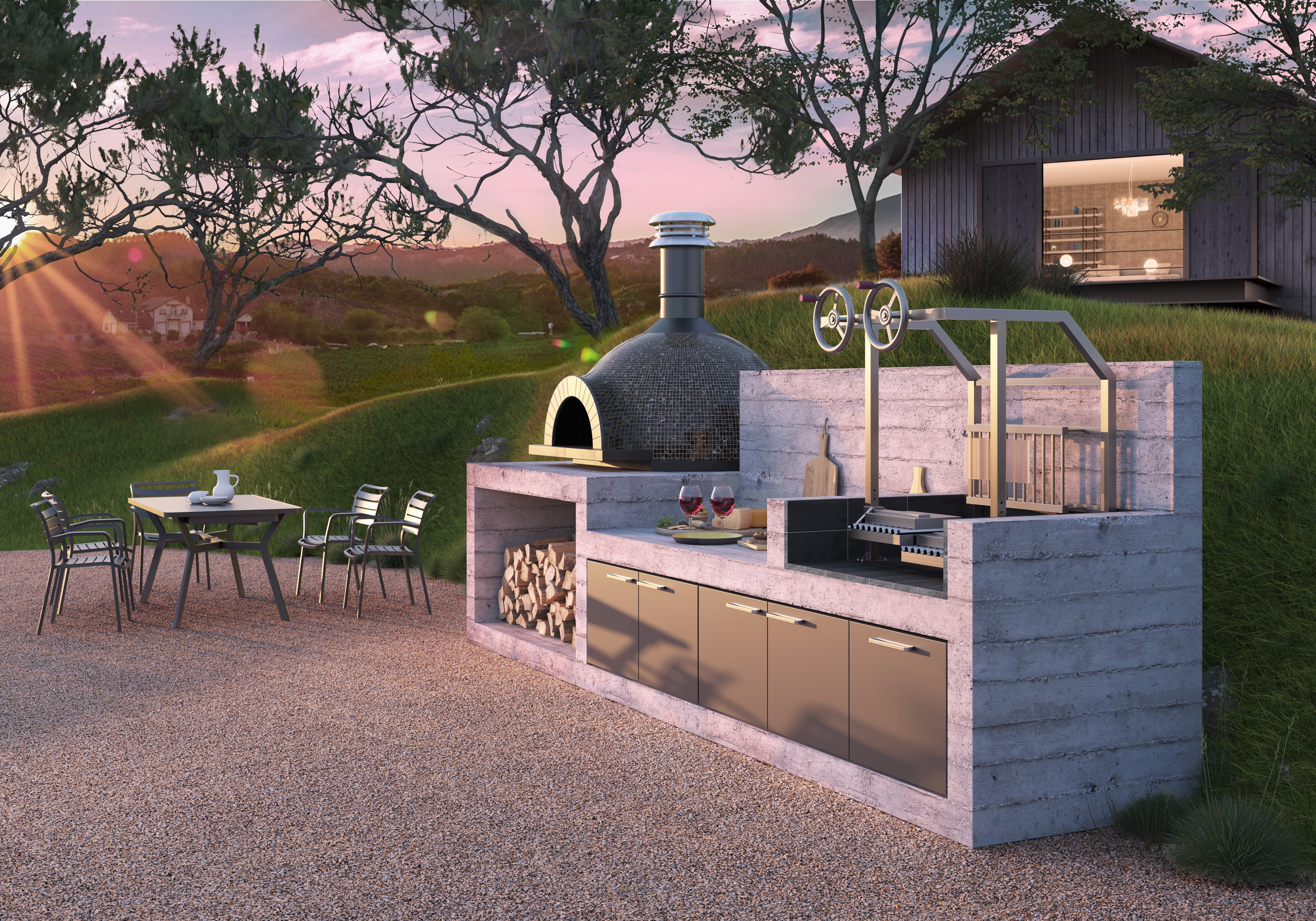 Eine Outdoor-Küche verlängert den Wohnraum. Doch auch die Geselligkeit profitiert davon, denn sie ermöglicht das Interagieren während des Kochens. Die Außen-Küchen können so gestaltet werden, dass sie nahezu alle Funktionen einer Innenküche bieten, einschließlich Grillen, Kochen, Backen, Spülen und natürlich auch Kühlen. Eine willkommene Abwechslung, die das Kochen zu einem noch angenehmeren Erlebnis macht.