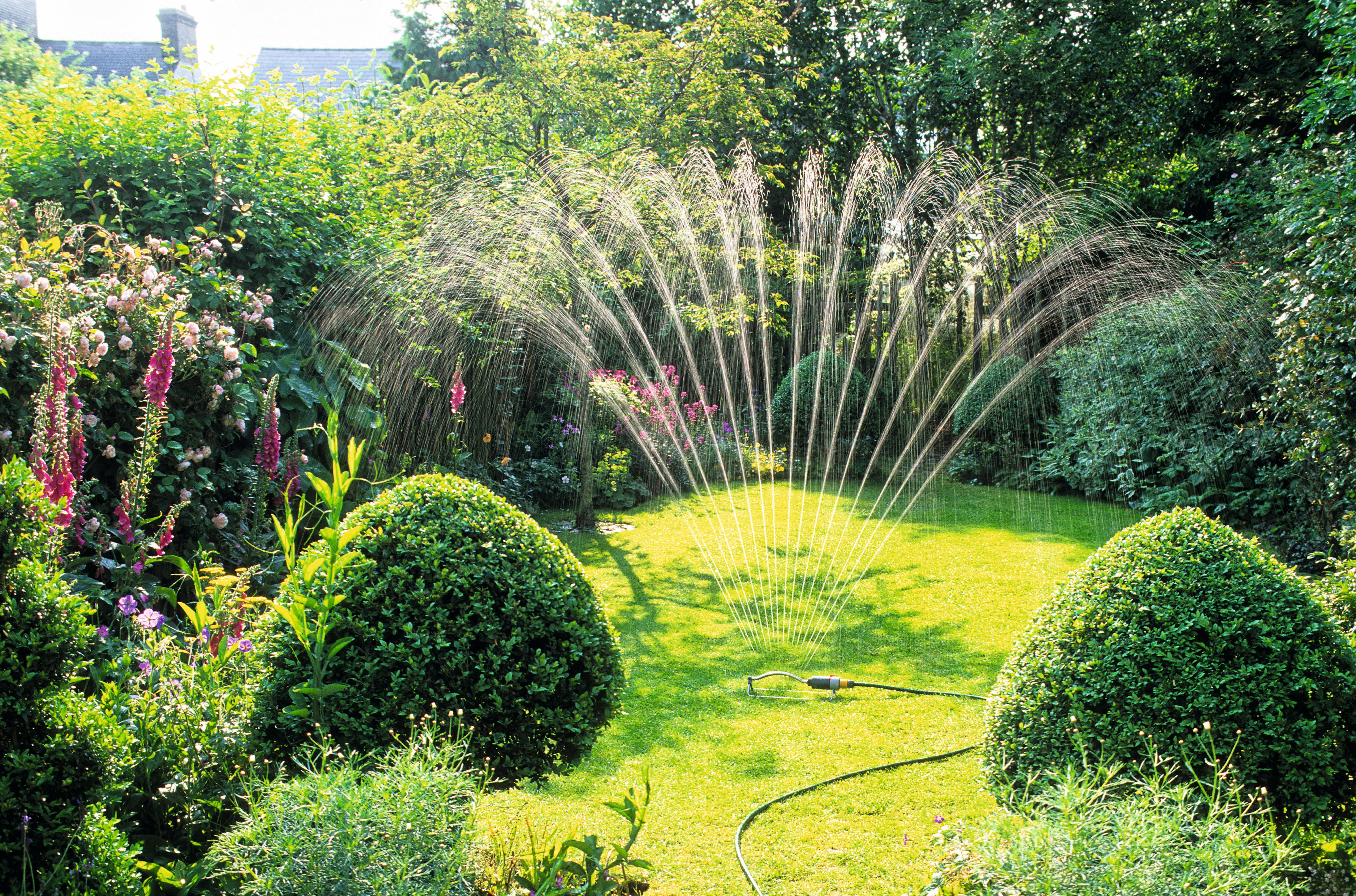 Zwar kommen Rasenflächen kurzzeitig auch ohne Wasser aus, doch wer seinen Rasen den ganzen Sommer und auch in Abwesenheit grün halten möchte, sollte ihn mit einem Rasensprenger ausgiebig bewässern. Für eine optimale Durchfeuchtung sollte der Rasensprenger mindestens 45 Minuten laufen.