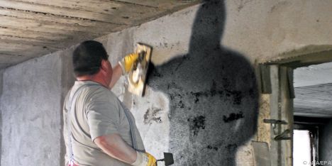 "Wenn die Fläche, die repariert werden soll, nicht besonders groß ist, kann das wirklich jeder", sagt Michael Stingl, gelernter Maurer und Hochbaupolier. Wichtig ist, die schadhafte Stelle erst einmal mit einer weichen Bürste oder dem Staubsauger gründlich von losen Teilen und Staub zu befreien. Danach sollten Heimwerker die Wand auf jeden Fall leicht anfeuchten. "Nur dann können sich die Materialien gut miteinander verbinden."